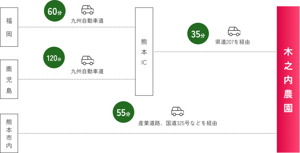 アクセス ACCESSアクセス 自家用車でお越しの方 公共交通でお越しの方 熊本ICから35分。新阿蘇大橋のふもと。 自家用車でお越しの方 公共交通お越しの方 木之内農園 〒869-1401 熊本県阿蘇郡南阿蘇村立野203-1TEL.0967-68-0552(代表)営業時間:9:00~17:00 店休日:不定休 STRAWBERRYいちご狩り詳細を見る >STRAWBERRYいちご狩り FRUITS JAM手作りジャム詳細を見る >FRUITS JAM手作りジャム ICHIGO CAFEカフェ詳細を見る >ICHIGO CAFEカフェ